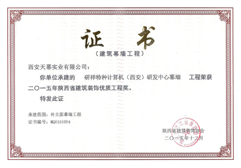 2015年度陜西省建筑裝飾優(yōu)質(zhì)工程——研祥計(jì)算機(jī)西安研發(fā)中心