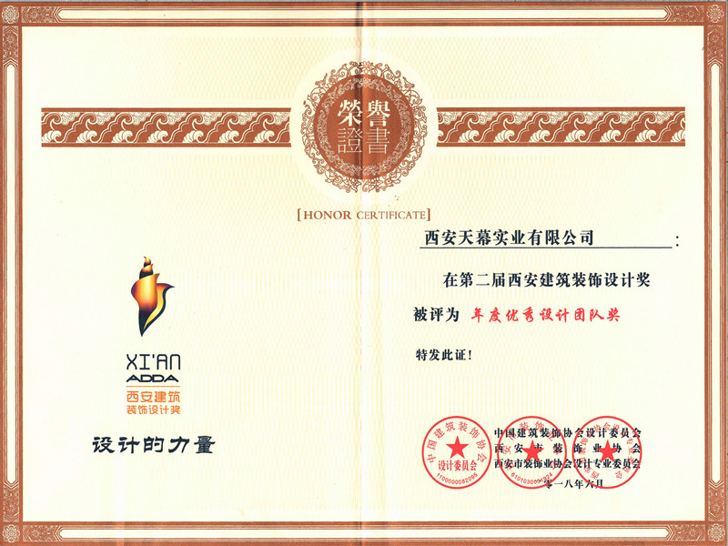 第二屆西安建筑裝飾年度優(yōu)秀設(shè)計(jì)團(tuán)體獎(jiǎng)