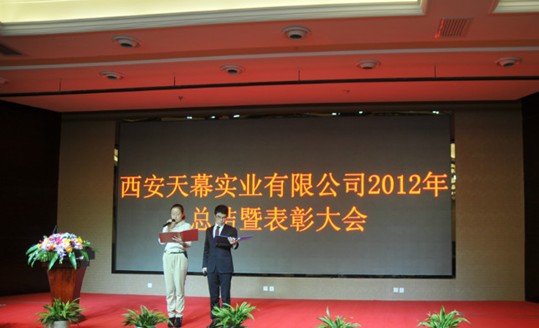 年會(huì)上,公司總經(jīng)理吳劍先生的發(fā)言,回顧了2012年公司取得的成績(jī)及2013年的戰(zhàn)略規(guī)劃,此次年會(huì)公司為員工提供了一個(gè)展示自我和團(tuán)隊(duì)的舞臺(tái),使員工不斷挖掘自身表演才能,豐富文化生活。優(yōu)美的舞蹈、搞笑的小品、精彩的歌聲等,這些節(jié)目都充分的展示了我們西安天幕實(shí)業(yè)有限公司的企業(yè)文化氛圍。整個(gè)年會(huì)在激情歡樂(lè)的氣氛中圓滿結(jié)束 。