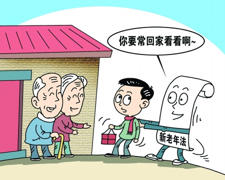 新修訂的《老年人權(quán)益保障法》今日起正式實施。新法規(guī)定,家庭成員應(yīng)當(dāng)關(guān)心老年人的精神需求,不得忽視、冷落老年人。與老年人分開居住的家庭成員,應(yīng)當(dāng)經(jīng)常看望或者問候老年人。這也被媒體解讀為“?;丶铱纯磳懭敕伞?,不??赐先藢龠`法。該法同時規(guī)定,用人單位應(yīng)當(dāng)按照國家有關(guān)規(guī)定保障贍養(yǎng)人探親休假的權(quán)利。