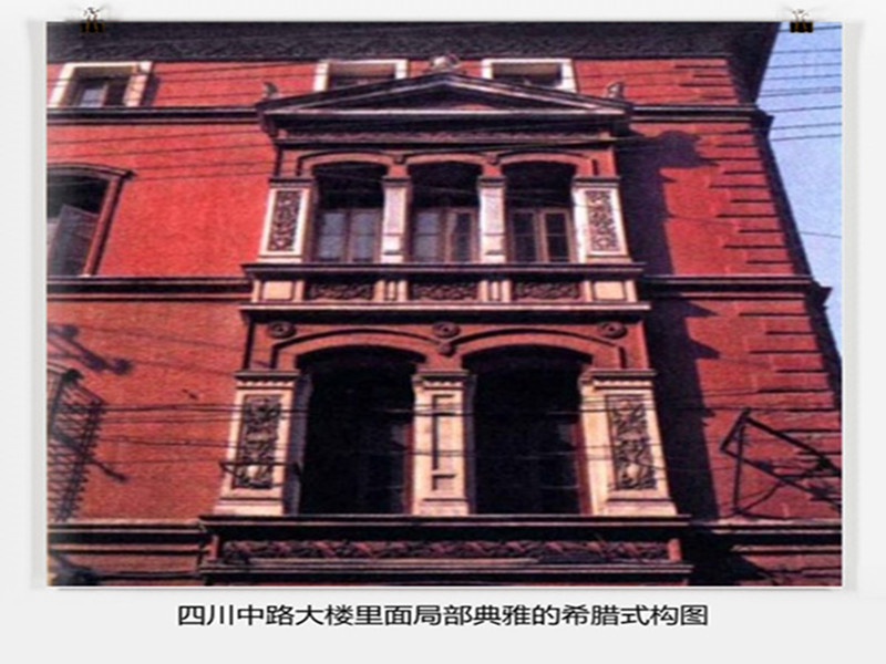 上海屬于文藝復(fù)興風(fēng)格的建筑大多建成于19世紀(jì)后期,其中比較重要的代表當(dāng)屬四川中路185號(hào)原三井洋行上海分公司,1903年日籍建筑師平野勇造設(shè)計(jì)。奉仿意大利文藝復(fù)興府邸式,褚紅色的清水磚外墻雖樸實(shí)無(wú)華,但沿四川路的東立面卻有兩組垂直的希臘式三角形山花與三聯(lián)窗、雙聯(lián)窗的組合,每層之間都有明顯的腰線,做工精確而細(xì)膩。頂部出搪較深.澹下及門窗等部位有精致的磚雕。又如美孚行大樓,1911年建造,即今廣東路94號(hào)黃浦區(qū)中心醫(yī)院。立面作三段式劃分,人口為白色大理石門廊。塔司干式柱,上部支承陽(yáng)臺(tái).二層作半圓券窗,窗間墻飾粗石壁柱。第三、四層間有較深的挑塘,第四層以連續(xù)的愛(ài)奧尼克式雙壁柱構(gòu)成裝飾性外廊,頂層中部原來(lái)還有一裝飾性山墻,飾有山花、半圓券窗,惜現(xiàn)已無(wú)存。還有近外灘的北京東路南側(cè)一整排建筑,立面連續(xù)的券窗和三段式處理顯示了文藝復(fù)興強(qiáng)調(diào)的秩序感。南京東路的慈安里大樓和徐家匯的徐匯中學(xué)主樓,則屬干法國(guó)文藝復(fù)興風(fēng)格,只是前者多了一點(diǎn)巴洛克的曲線,后者添了一些宗教的沉靜氣氛。