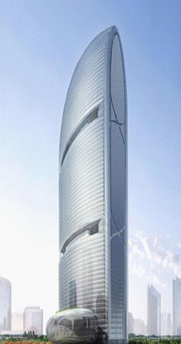 SOM建筑設(shè)計主要在外形方面設(shè)計新穎,并考慮南方是沿海地區(qū),臺風(fēng)很大,樓的面積也很大(樓高309米,建筑面積21萬平方米,幕墻面積10萬平方米)。因此將樓設(shè)計成梭形,在樓91米處和178.6米處有兩個機(jī)械風(fēng)洞,減少和減輕臺風(fēng)對大樓的撞擊和損傷,在風(fēng)洞里安裝四組發(fā)電機(jī),利用風(fēng)能發(fā)電,給大樓提供電力能源。今天正好碰到此項目,我焉能放過。借助施工電梯和人力攀行,我和周總登上第49層實地學(xué)習(xí)。