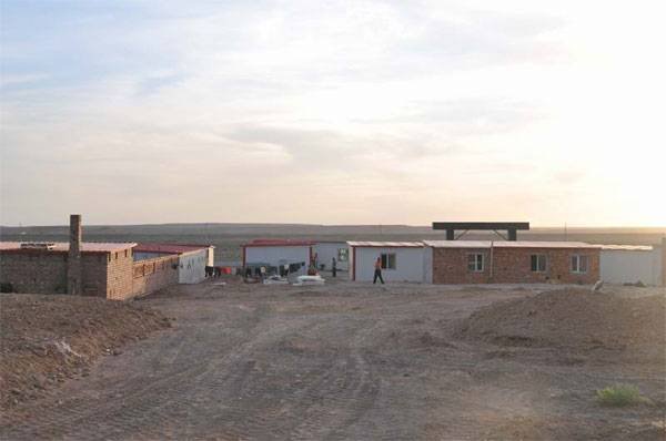 準(zhǔn)東二號礦井行政生活服務(wù)區(qū)綜合辦公樓食堂活動中心工程工地位于準(zhǔn)東煤田大井礦區(qū)中部,奇 臺縣城北140km,海拔+595m,屬大陸干旱沙漠氣候,年溫差和晝夜溫差較大,這里氣象環(huán)境條件被稱作天然的陸地風(fēng)場,常年風(fēng)力都在3級以上,幾乎每天都有一場5級以上的沙塵暴。晚上常常被屋頂呼呼作響聲驚醒,生怕房頂給掀翻了。這里自然條件惡劣,幾乎是見不到什么生物。
