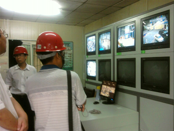 部,現(xiàn)代化的電子監(jiān)控系統(tǒng)在這里得到了完美的應(yīng)用,面對(duì)顯示屏,施工工地上的每一個(gè)角落都隨時(shí)出現(xiàn)在我們的視野里,倘使有一個(gè)工人沒有戴安全帽,在這里便可以看的清清楚楚,便于及時(shí)糾正。