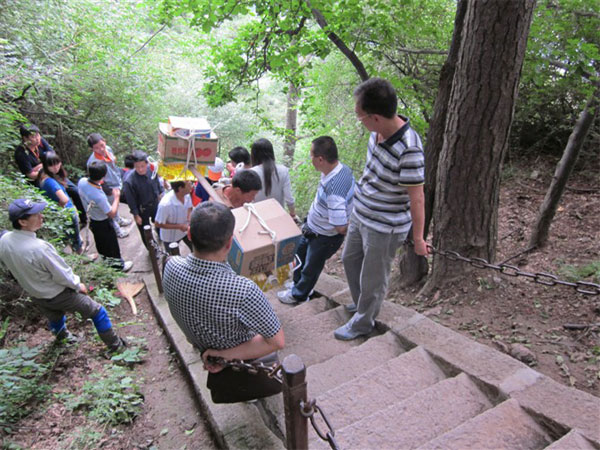 下山的時(shí)候,看著還在努力上山的人們,雖然有些筋疲力盡,心中卻是充滿自豪。可就在此時(shí),心中的成就感卻被眼前的另一種景象所震驚,我們看見了兩個(gè)